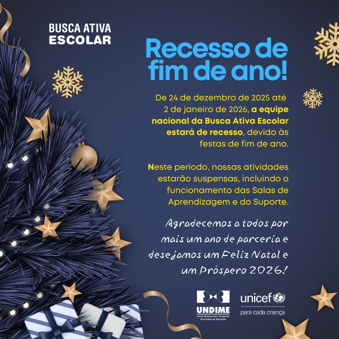 A Busca Ativa Escolar é uma estratégia composta por uma metodologia social e uma ferramenta tecnológica disponibilizadas gratuitamente para estados e municípios. Ela foi desenvolvida pelo UNICEF, em parceria com a União Nacional dos Dirigentes Municipais de Educação (Undime) e com apoio do Colegiado Nacional de Gestores Municipais de Assistência Social (Congemas) e do Conselho Nacional de Secretarias Municipais de Saúde (Conasems).